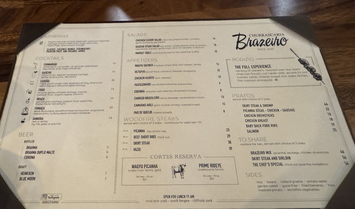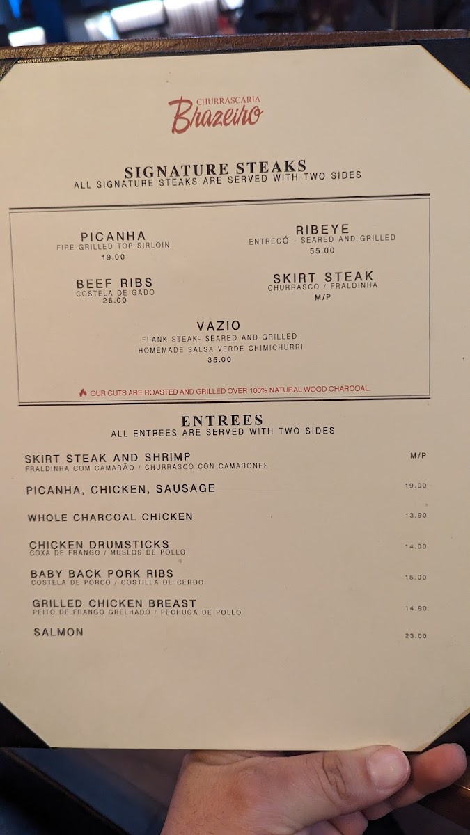 Prime skirt steak, served with sauteed shrimp. A delicious meal that is very popular at Brazeiro. Served with 2 sides.